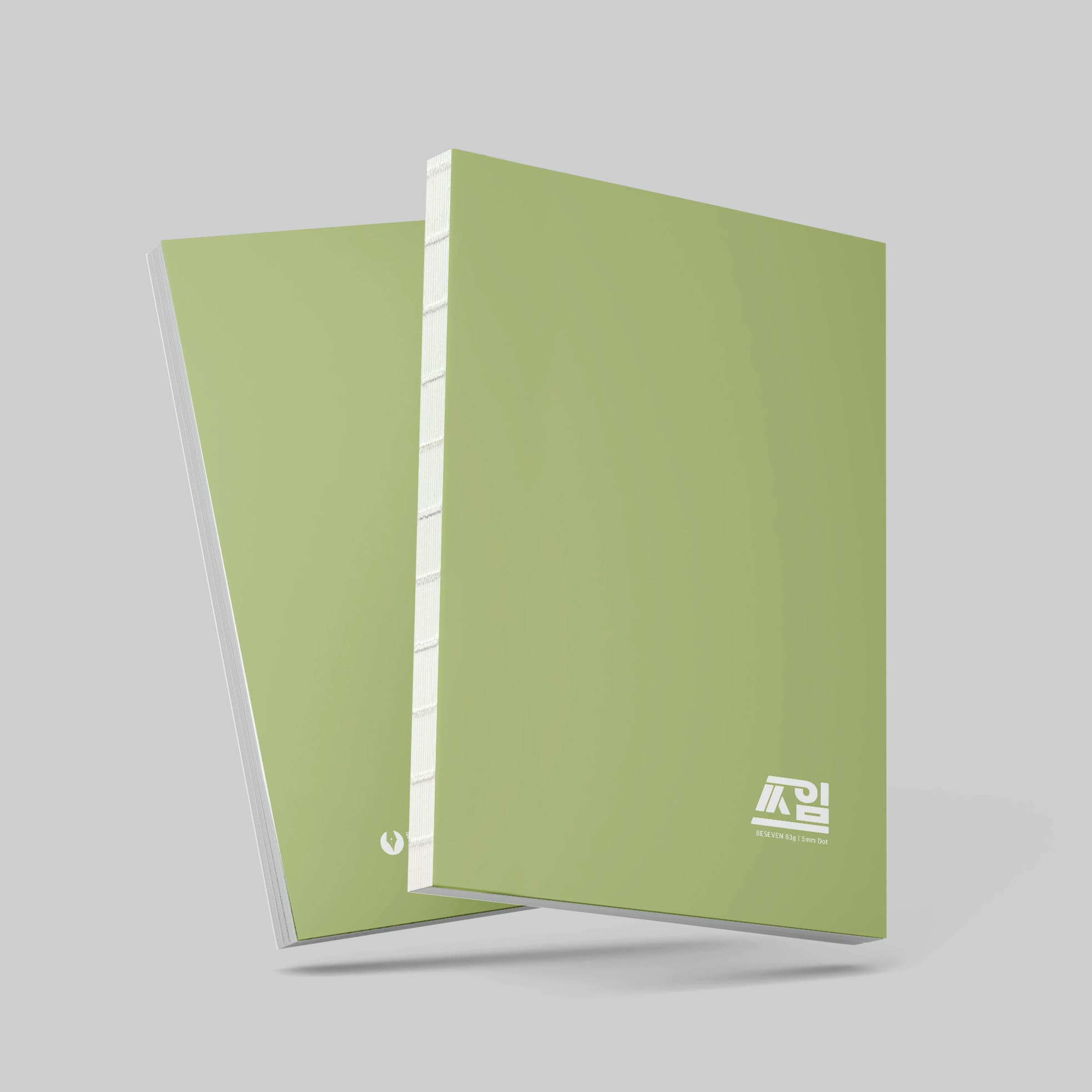책장에 나란히 꽃아두었을 때도 우리 노트를 구분해내기 쉽게 하단 메인 컬러 + 상단 백색으로 분할하였습니다.